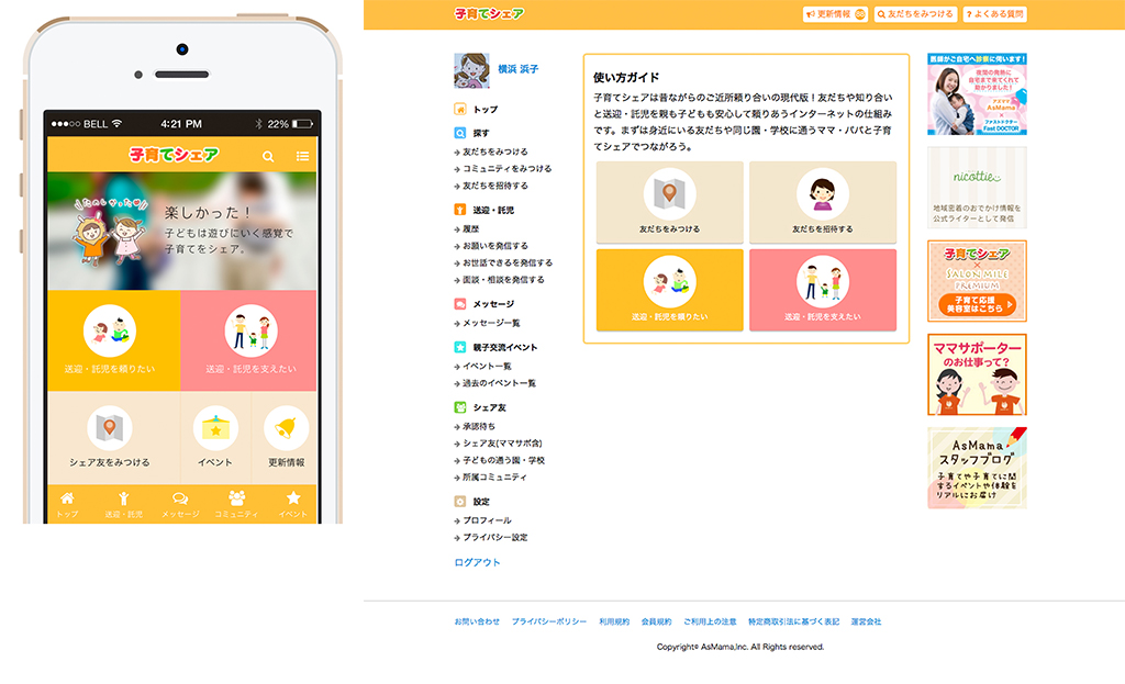 「子育てシェアは、子どもの送迎や託児などを、知り合い同士で助け合えるサービスです。最低1時間500円からをお礼として支払うルールとして使ってもらっています。それにより『いつも私ばかり申し訳ない』『どうやってお礼しようか』などと気に病むこともなく、お互い気兼ねなく利用できるのです」